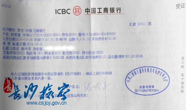 长沙县检察院的爱心汇款单