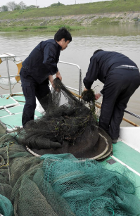 (通讯员:盛俊杰、贾忠军)4月14日上午9时许,在长沙市开福区人民检察院的督促下,长沙市渔政站与区农林水利局进行了一次联合禁鱼执法行动。该次行动共出动执法船只两艘,人员19人,除渔政工作人员外,还有4名检察官现场监督。执法船只行驶在捞刀河十余公里的水域上,用高音喇叭反复播放长沙市政府关于湘江长沙段及其支流部分水域自2016年4月1日起实施常年禁鱼的通告。执法人员立于船头对沿途少数捕鱼人员进行劝阻和宣传教育。当船行至汉回村地段时,发现有人还新购置电鱼网及拦河捕捞网等渔具,当即进行了没收。这次行动共发放宣传资料30余份,现场对10余名捕捞者进行了教育,没收电鱼网2副,长濠渔网4条,并当场进行了烧毁。
