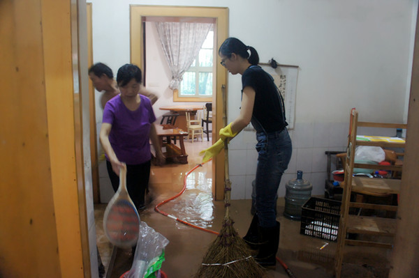 7月2日至4日,长沙市宁乡县由于持续几天大暴雨,河水猛涨,加之老城区的排水系统老化,处于地势低洼沿江地带的东沩路成了城中“重灾区”,很多社区居民一楼被大水淹盖。水势退却后,这些居民家中大量垃圾、淤泥堆积,家具家电、生活用具到处散落,严重影响了居民的生活。位于东沩路上的文中社区居住的多是老人,灾后清理工作无疑让这些老人们“雪上加霜”。