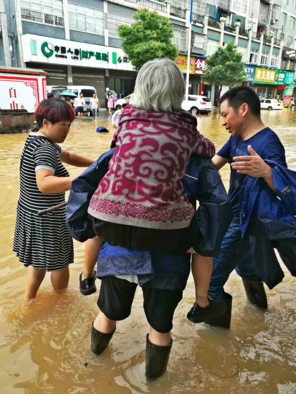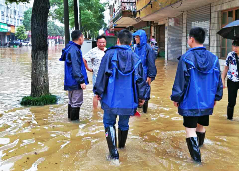 由于短时降雨量大,地面积水不能及时排出,导致宁乡城区部分地方积水严重。宁乡县检察院副检察长喻昭强、党组成员、政工室主任章洪带领第三分队队员赶赴梅家田内涝严重的城区地段进行抢险,帮助居民转移。队员们深入到小区住户家中,调查摸排危房危墙、排水渠(管)道等情况,帮助居民撤离,保障人民群众生命财产安全。