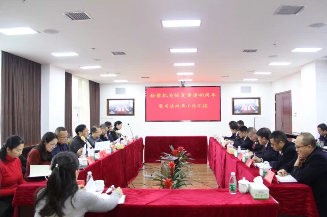 12月7日上午,“雨花区五届人大常委会第36次主任会议”在区检察院举行,专题听取“检察机关恢复重建40周年暨司法改革工作汇报”。雨花区人大常委会党组书记、主任龚景顺、雨花区人大常委会党组副书记、副主任谢爱龙、雨花区人大常委会党组成员、副主任李劲松和各委室主任出席,会议由李劲松副主任主持。