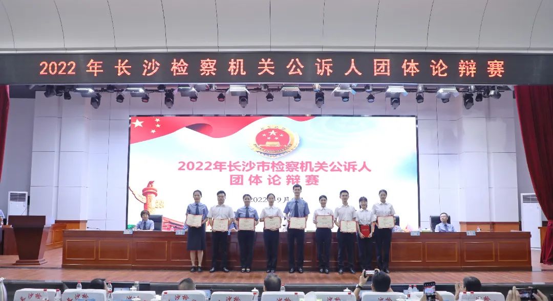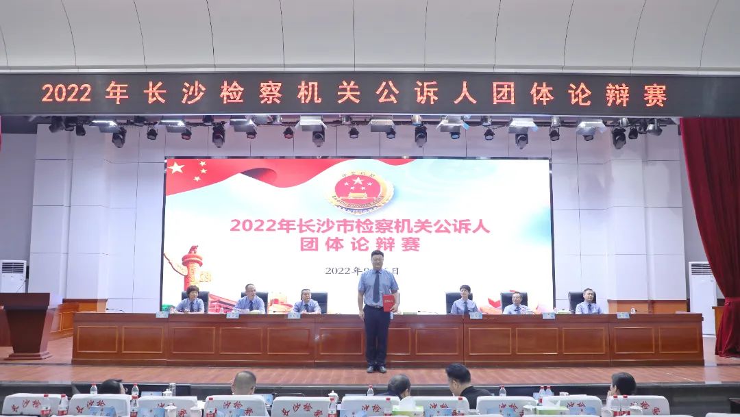 2022年9月6日,长沙市检察院举办全市公诉人团体论辩赛,来自长沙市检察院及九个基层检察院的18支代表队72名辩手同台竞技,奉上了9场精彩的团体论辩赛。湘潭大学教授张永红、湖南省检察院第三检察部主任王洪涛、长沙市中级法院副院长邹剑钧、长沙市公安局法制支队党委副书记、政委马晓云、长沙市司法局三级调研员郭灿霞担任比赛评委。比赛邀请了湖南省检察院、长沙市委政法委、长沙市中级法院、长沙市公安局、长沙市司法局有关领导到场观摩。