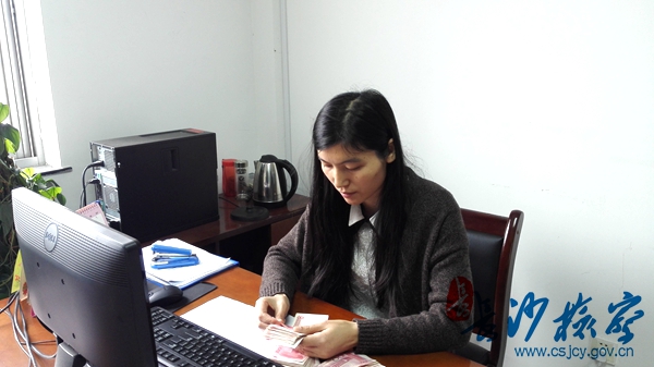 长沙县检察院检察官正在统计爱心款