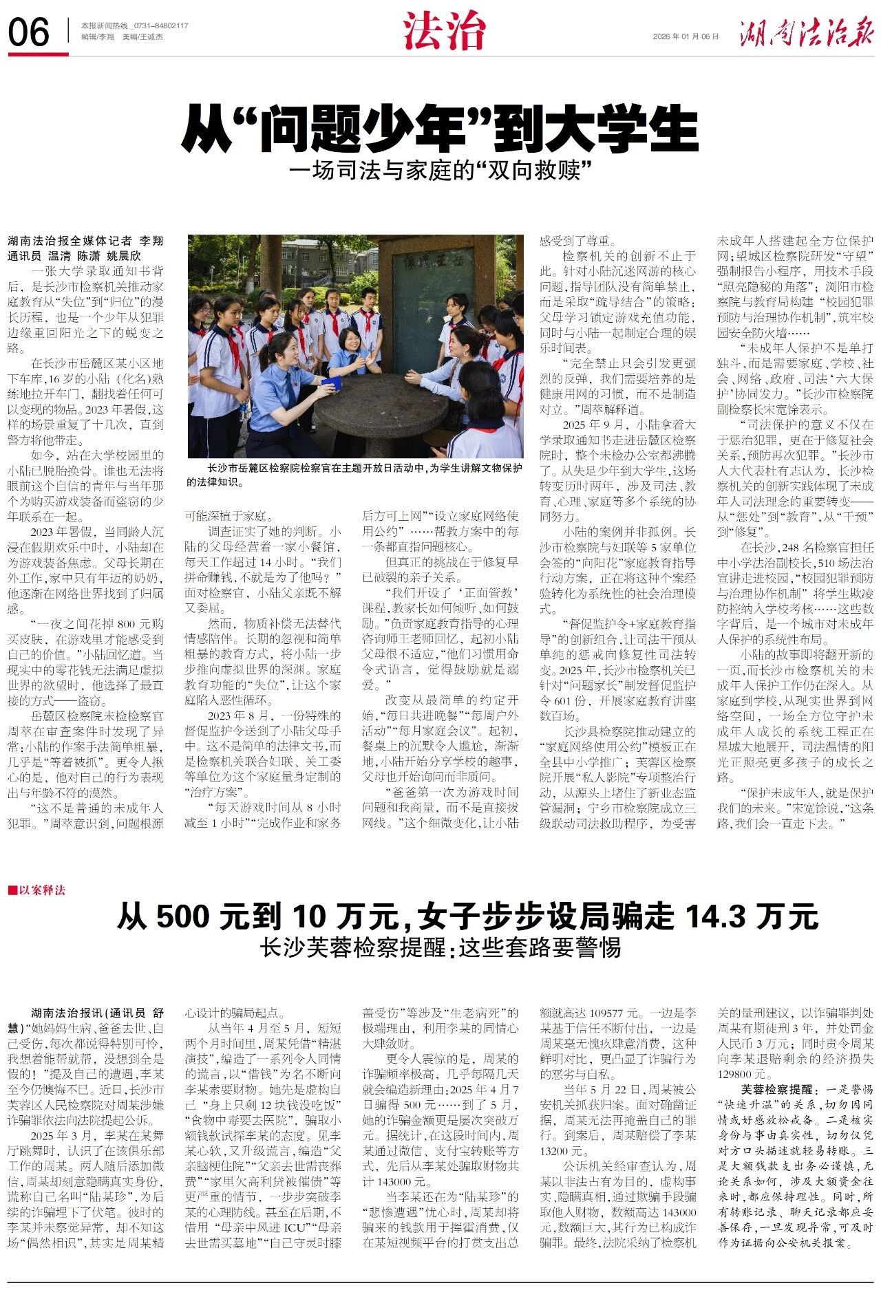 小陆的故事即将翻开新的一页,而长沙市检察机关的未成年人保护工作仍在深入推进。从家庭到学校,从现实世界到网络空间,一场全方位守护未成年人成长的系统工程正在星城大地展开,司法温情的阳光正照亮更多孩子的成长之路。